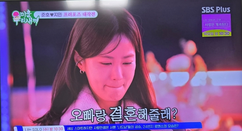 **"지민아, 평생 널 웃게 해줄게. 나와 결혼해 줄래?"**라는 그의 고백에 김지민은 눈물을 흘리며 감동적으로 대답했습니다.
