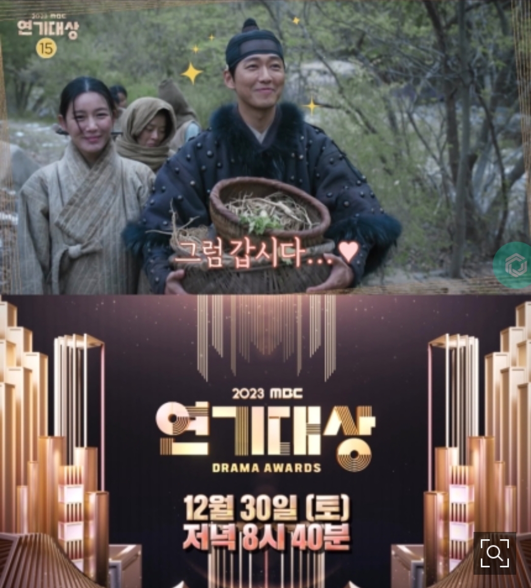 '2023 MBC 연기대상'은 12월 30일(토) 저녁 8시 40분에 방송될 예정입니다.