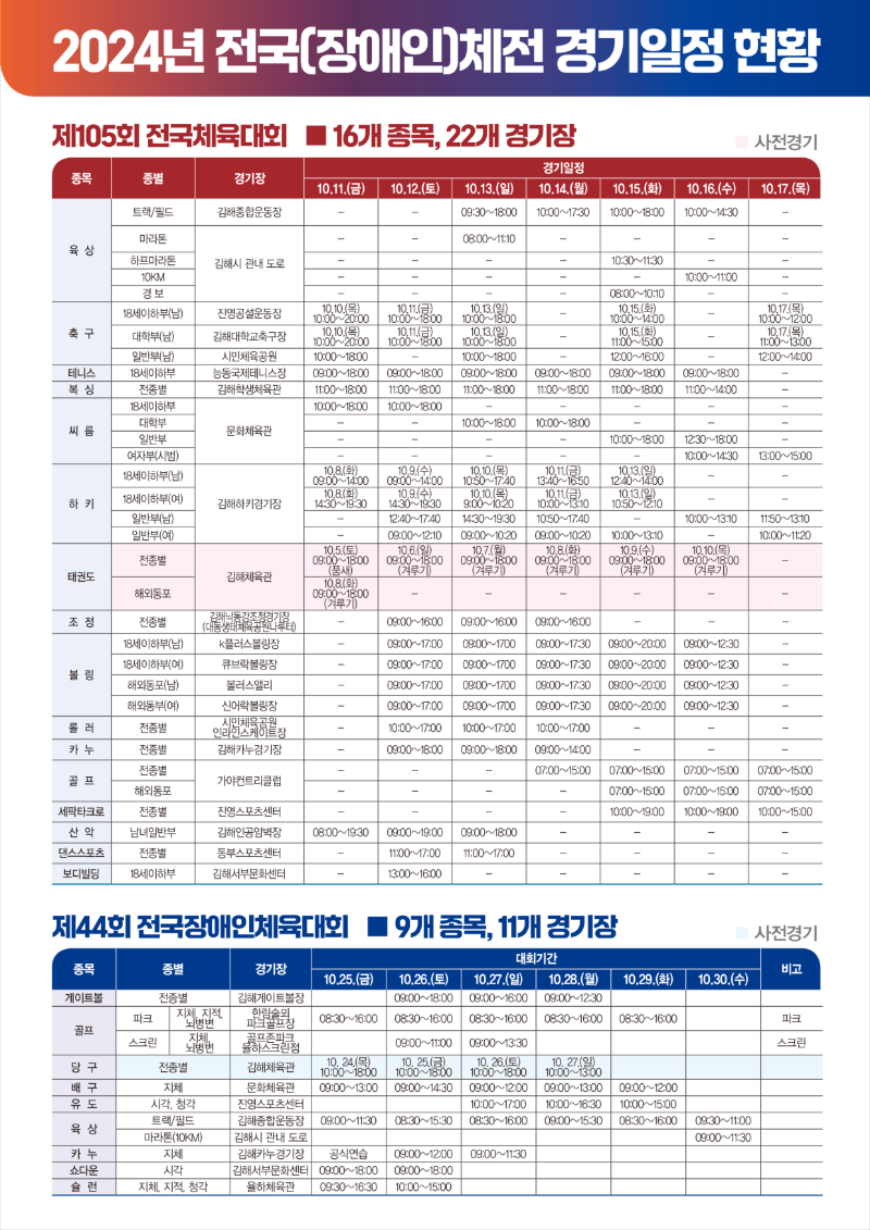 또한, 2024년에는 장애인 체육대회도 함께 진행됩니다. 두 가지 대회가 동시에 열리는 만큼, 더욱 풍성한 볼거리를 제공합니다. 자세한 일정은